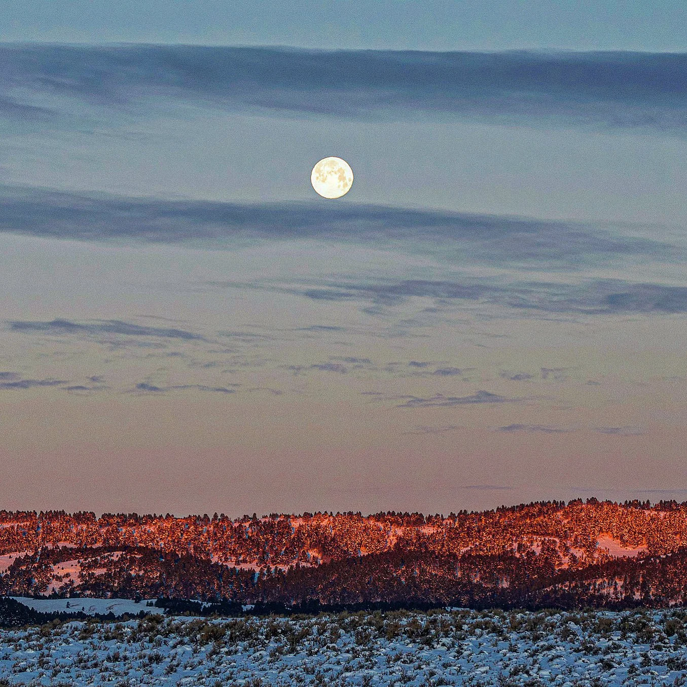 And I was fortunate enough to snap a photo of the Wolf Moon as it was setting in the western sky yesterday morning at first light.